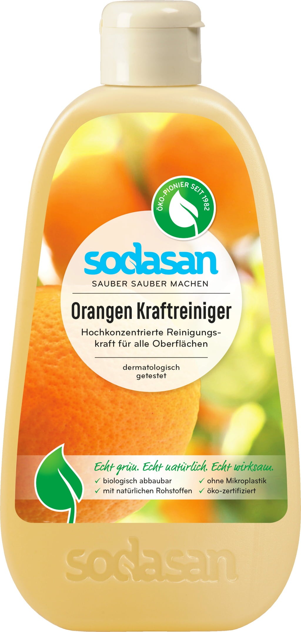 A Sodasan Narancs tisztító a természetes zsíroldó hatású narancsolajat növényi tenzidekkel kombinálja.