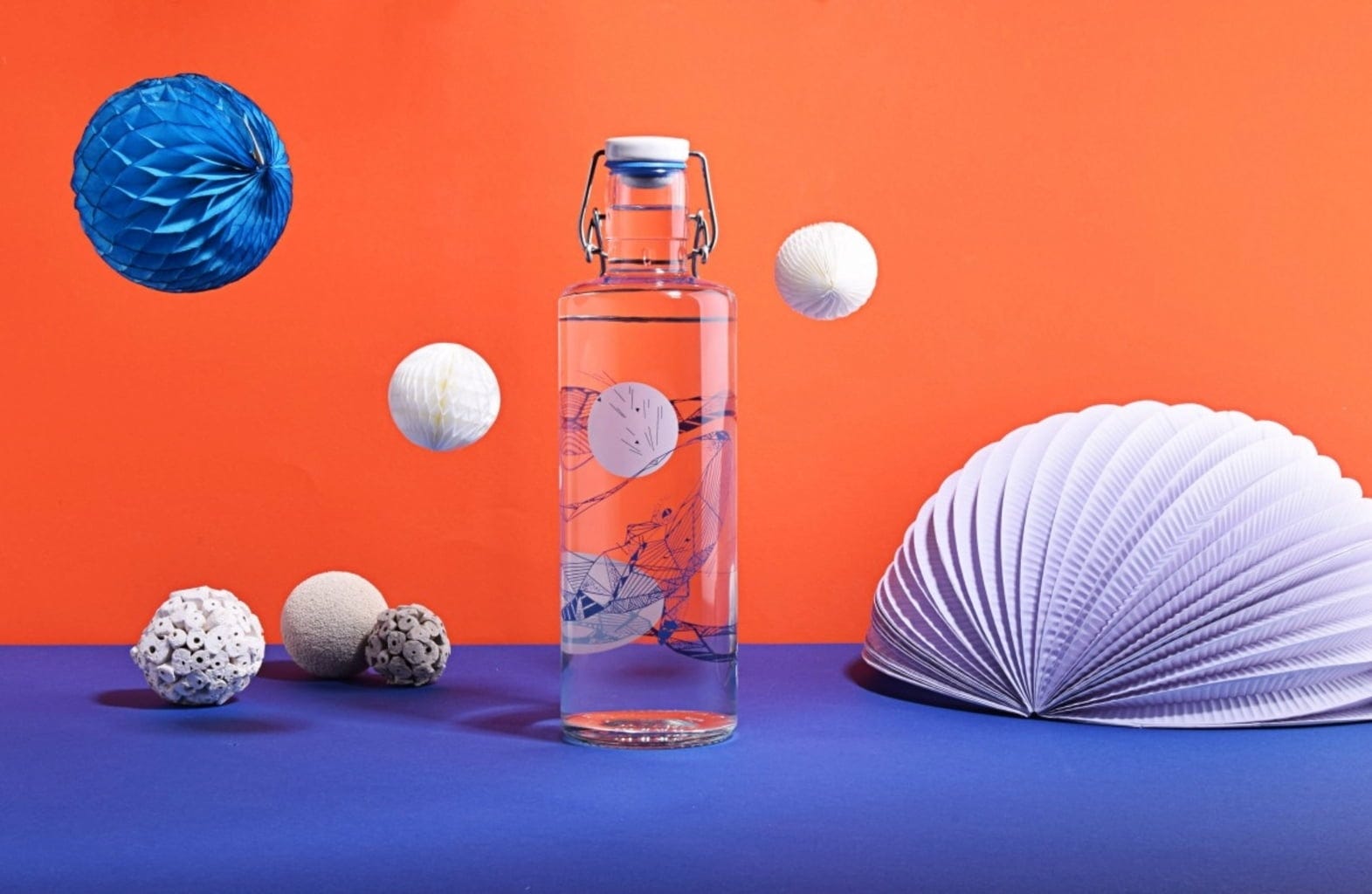 Ennek az ivópalacknak az esetében natúr kaucsuk, rozsdamentes acél, porcelán és természetesen üveg került felhasználásra. A design hozzájárul a test, az elme és a lélek ellazulásához. Tökéletes a fizikai és szellemi jóléthez.