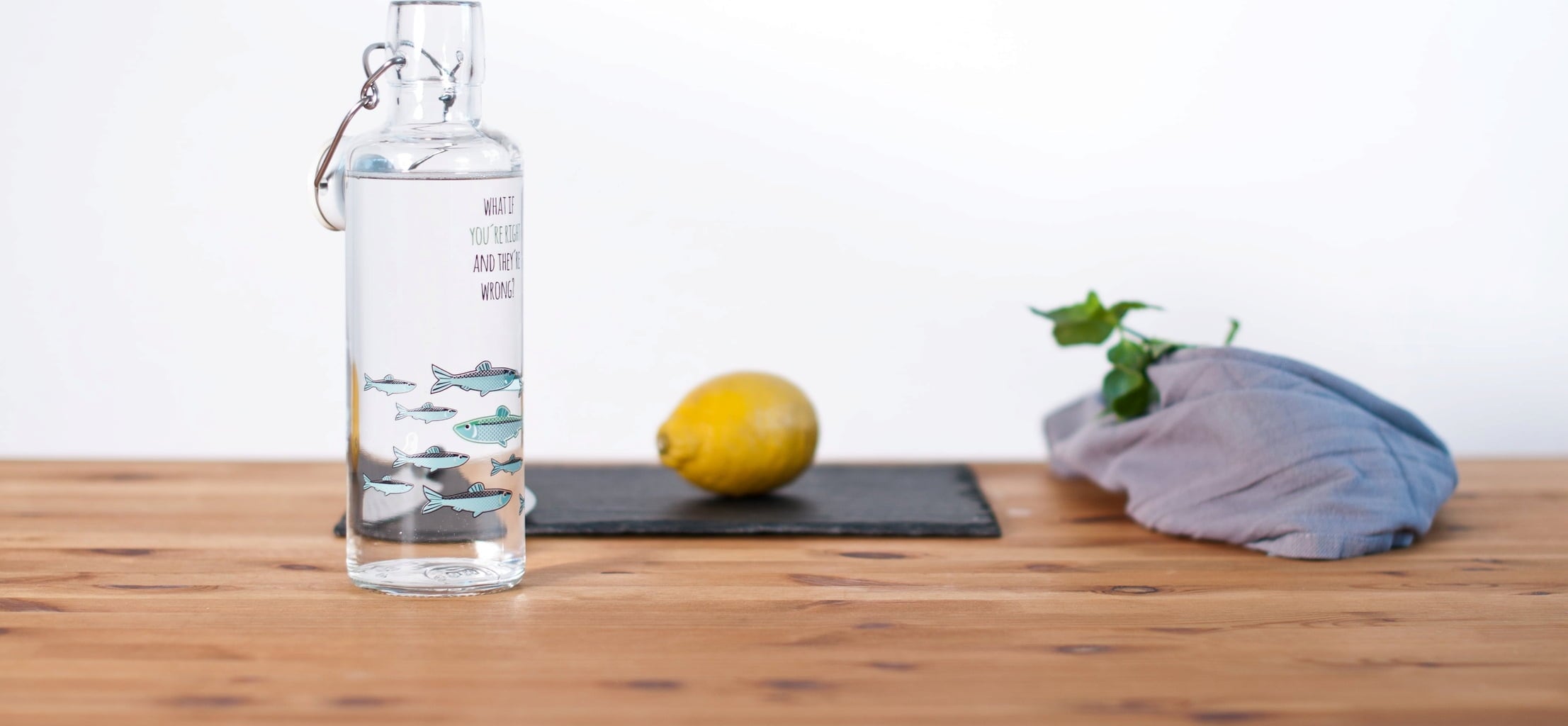 Ez az üveg garantáltan műanyagmentes italfogyasztást biztosít. A kiváló minőségű anyagok megóvják a környezetet, míg a nagyszerű design az úszásra ösztönöz és támogat az új ötletekben.