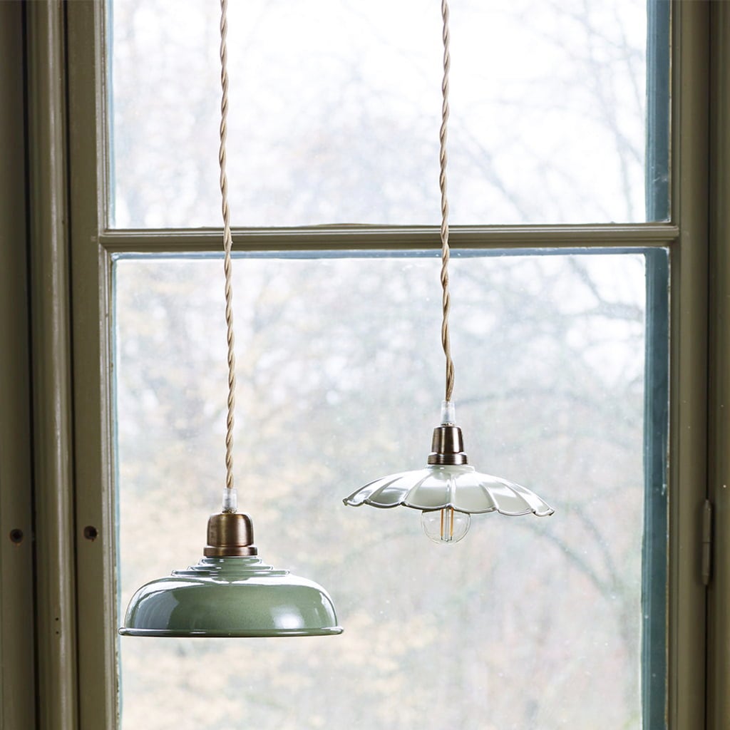 A sárgaréz kivitelű alap gyönyörű kontrasztot alkot a lakkozott fém lámpabúrával. A szövetből készült kábel optimális hossza 150 cm.