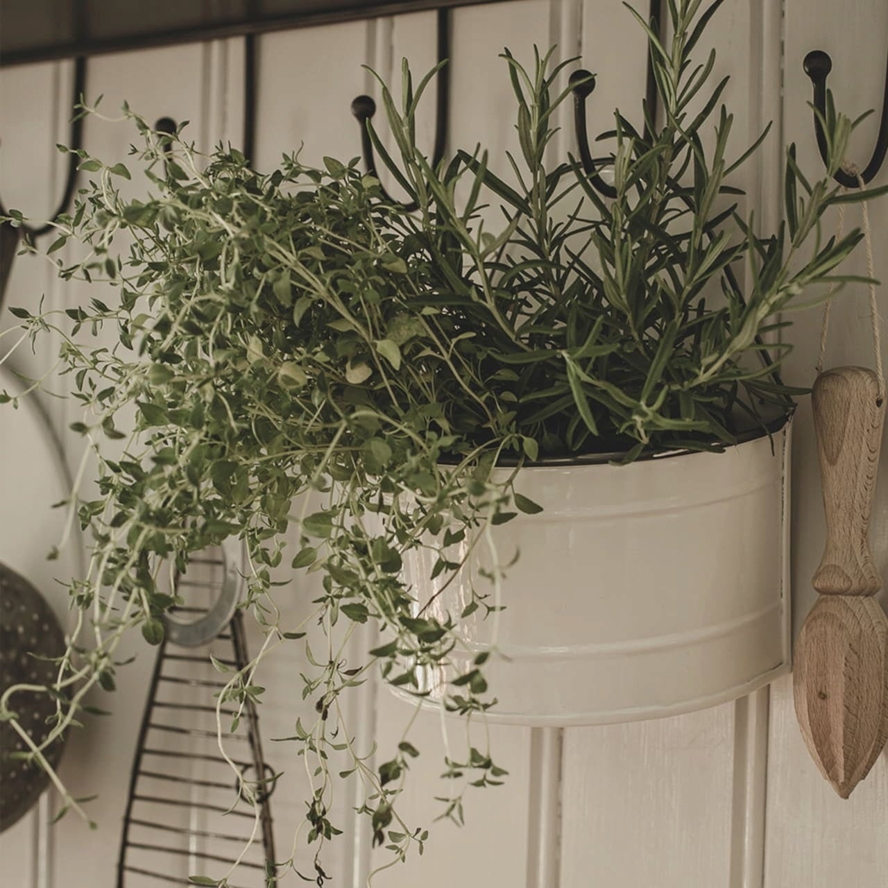 Ez az elegáns fehér színű, szürke szegéllyel rendelkező fali tartó extravagáns kialakítást kínál. Akár növényeket helyez el benne, akár főzőkanalakat tárol benne, vagy netán fürdőszobai dolgokat – bármilyen célra tökéletes, a találékonyságnak nincs határa.