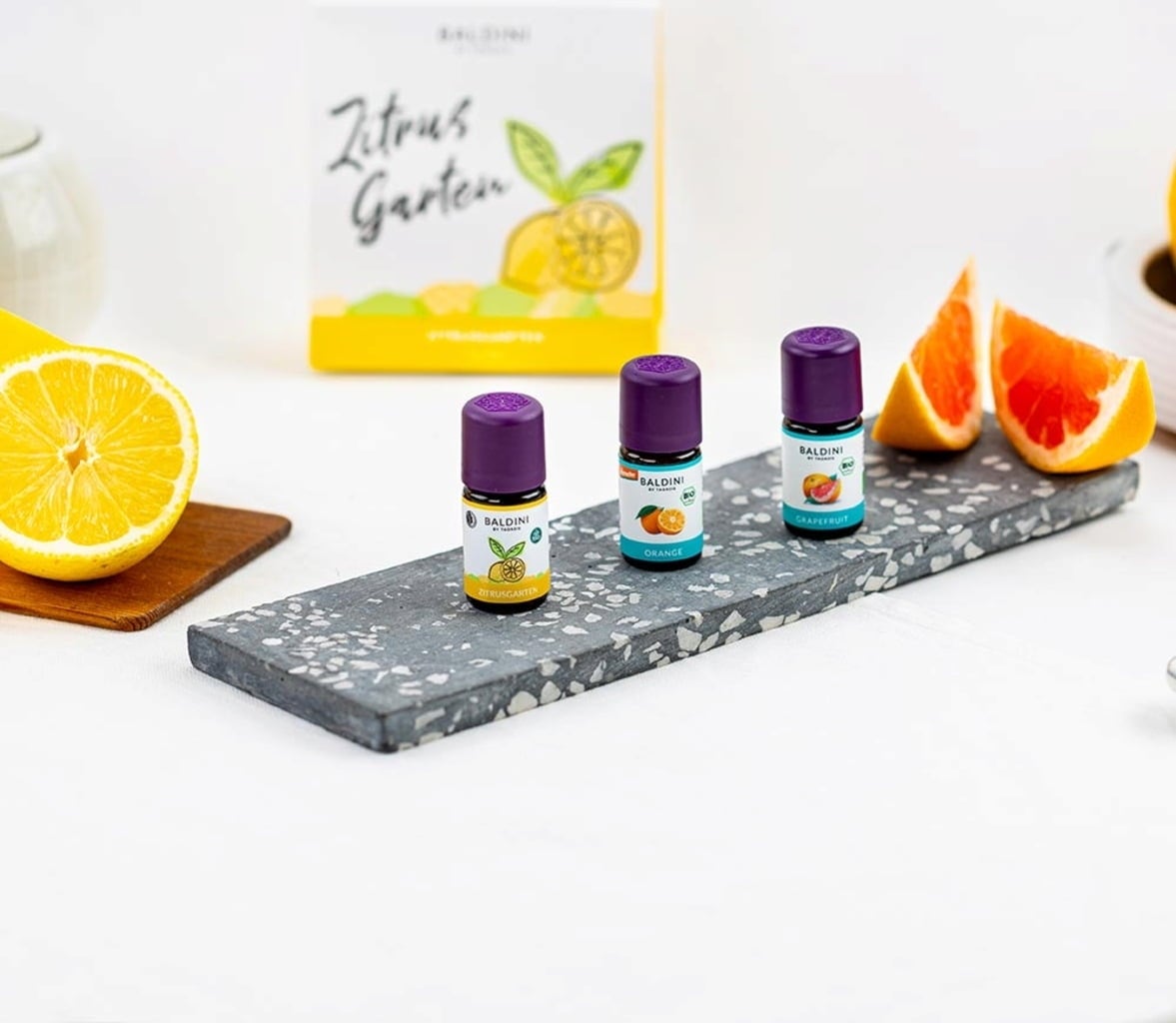 Ezzel az illat szettel megkezdődhet az aromás utazás a citrusparadicsomba. A nyári illatkeverékek (narancs, citrom, Zitrusgarten®) 100%-ban tiszta illóolajokból készülnek, és sokféleképpen felhasználhatók, akár kozmetikumokban, akár ételekben és italokban. Bárhogyan is használja az olajokat, garantáltan energiával töltik fel a napot.