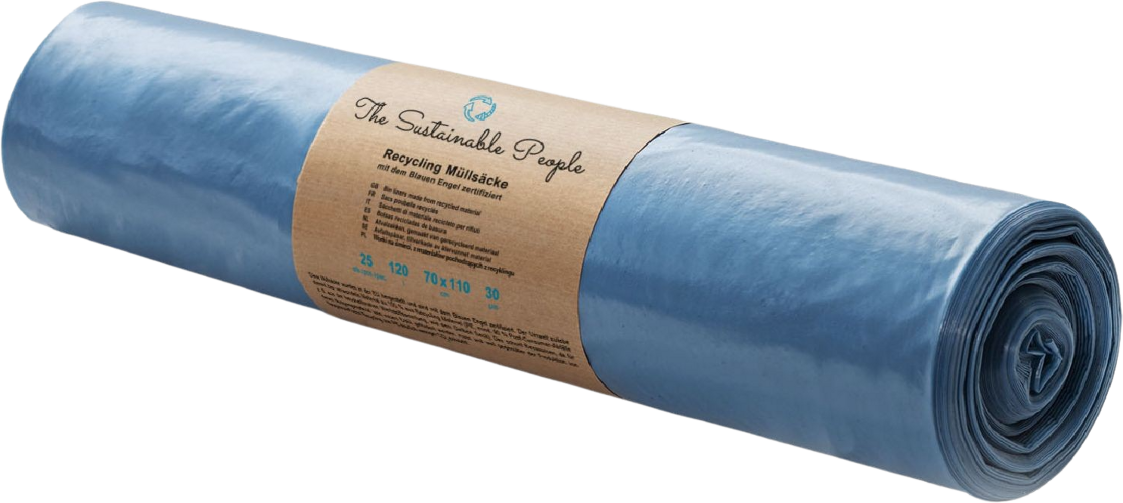The Sustainable People Újrahasznosított nagy teherbírású hulladékgyűjtő zsák, Kék 120 l (25 darab)