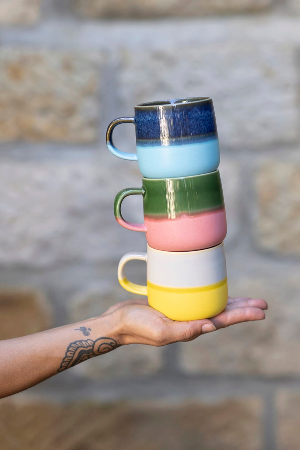 Az ipari báj találkozik a friss megjelenéssel - ez a kézzel készített, Industrial-stílusú kerámia bögre igazán szemet gyönyörködtető! A matt és fényes felületek összjátéka és az élénk színek minden egyes darabnak egyedi jelleget kölcsönöznek. A bőséges, 390 ml-es űrtartalmának köszönhetően ideális a kávé és a tea fogyasztásához!