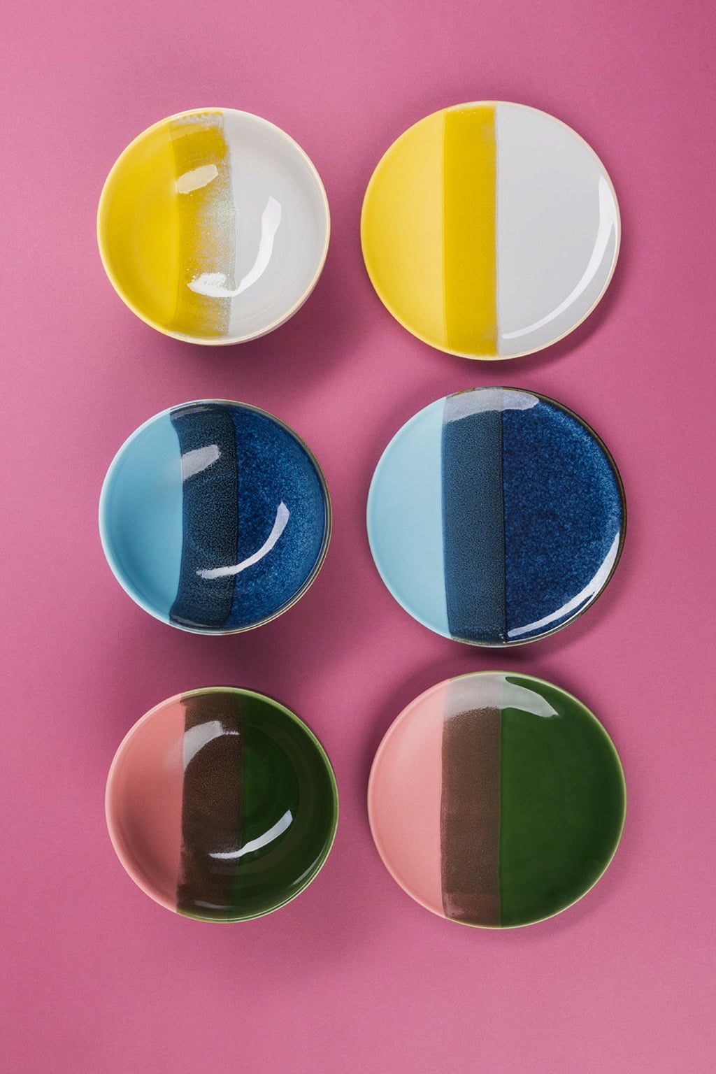 Robusztus kőagyagból készültek, kétszínű, reaktív mázukkal lenyűgözőek, ami modern megjelenést kölcsönöz nekik, és igazán szemet gyönyörködtetővé teszi őket bármely terített asztalon - a színátmeneteknek és a máz mélységének köszönhetően minden tányér egyedivé válik!