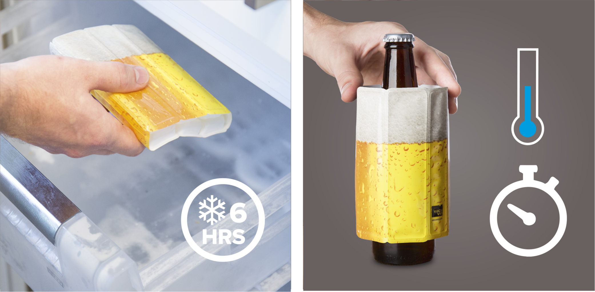 Alkalmazás: Egyszerűen helyezze a fagyasztóba legalább 6 órára, majd húzza rá az üvegre – tökéletesen illeszkedik a 0,33 l-es sörösüvegekre vagy fél üveg borokra. Akár 1,5 órán át hideg marad.