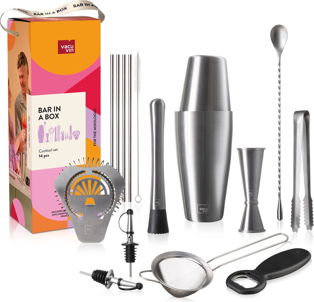 Készen áll otthoni bárja következő szintjére? A Vacu Vin Bar in a Box Mixologist egy 14 darabos szett mindazoknak, akik a koktélokat nemcsak inni, hanem ünnepelni is szeretnék. Egy profi bártenderrel közösen kifejlesztve stílust, funkcionalitást és kreativitást visz közvetlenül a konyhájába – tökéletes szenvedélyes mixereknek és mindenkinek, aki azzá szeretne válni.