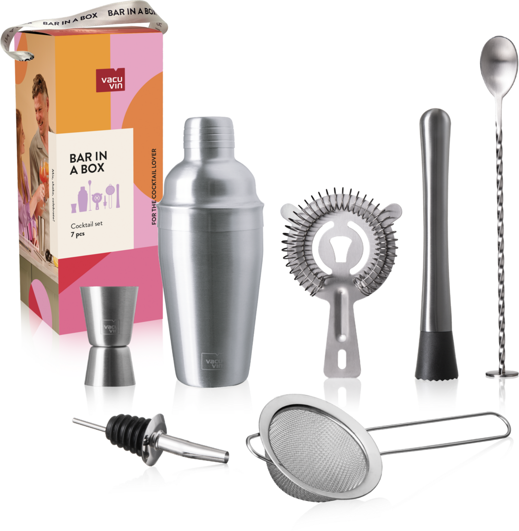 Keverjen koktélokat, mint egy profi – bárpultos tapasztalat nélkül is. A Vacu Vin Plus koktél szettje egy tökéletes 7 darabos készlet mindazoknak, akik stílusosan szeretnék elkészíteni és felszolgálni az italokat. Legyen szó kezdőről vagy tapasztalt vendéglátóról, ezzel a szettel klasszikus és kreatív koktélok egyaránt egy szempillantás alatt elkészíthetők.
