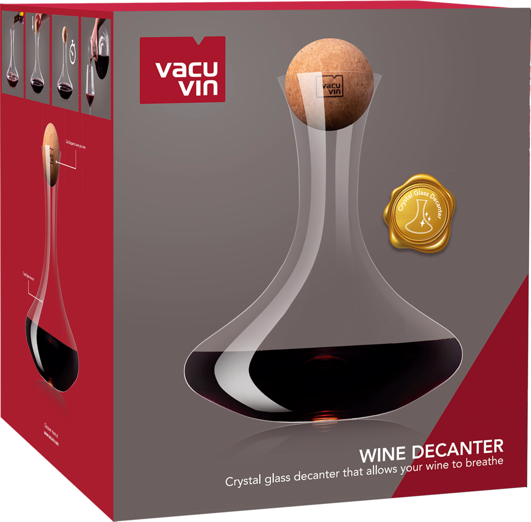 Több íz, nagyobb élvezet – a Vacu Vin bordekantáló segítségével érvényre juttathatja bora teljes aromáját. Az elegáns formájú, széles aljú dekantáló optimális szellőzést biztosít, és hagyja a bort lélegezni, hogy az ízek és a buké teljes mértékben kibontakozhassanak.