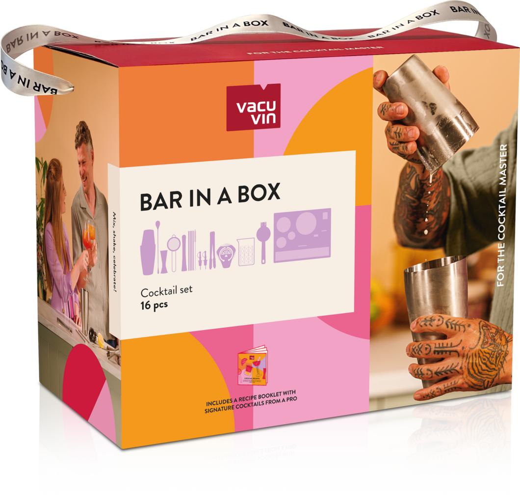 Mixelj profi módon! A Vacu Vin Bar in a Box Master egy 16 részes koktél szett mindazoknak, akik többet szeretnének kihozni az italaikból. Legyen szó kezdőről vagy tapasztalt hobbi bártenderről – itt minden megtalálható, ami a tökéletesen kikevert koktélokhoz szükséges. Mindezt stílusosan, egy elegáns parafa talpon prezentálva.