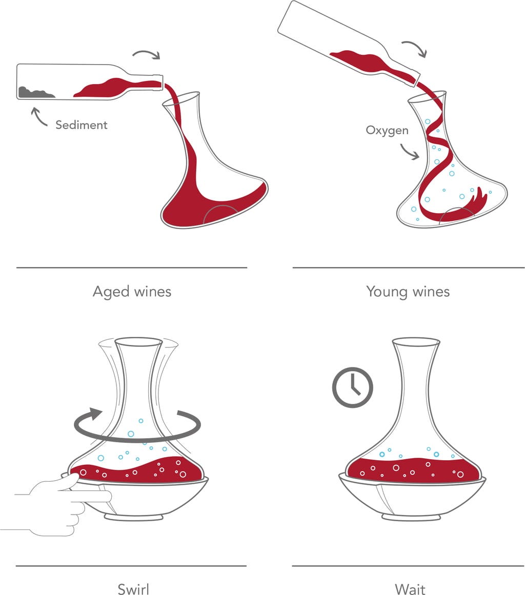 - Idősebb borok: Lassan öntse bele, hogy az üledék a palackban maradjon.