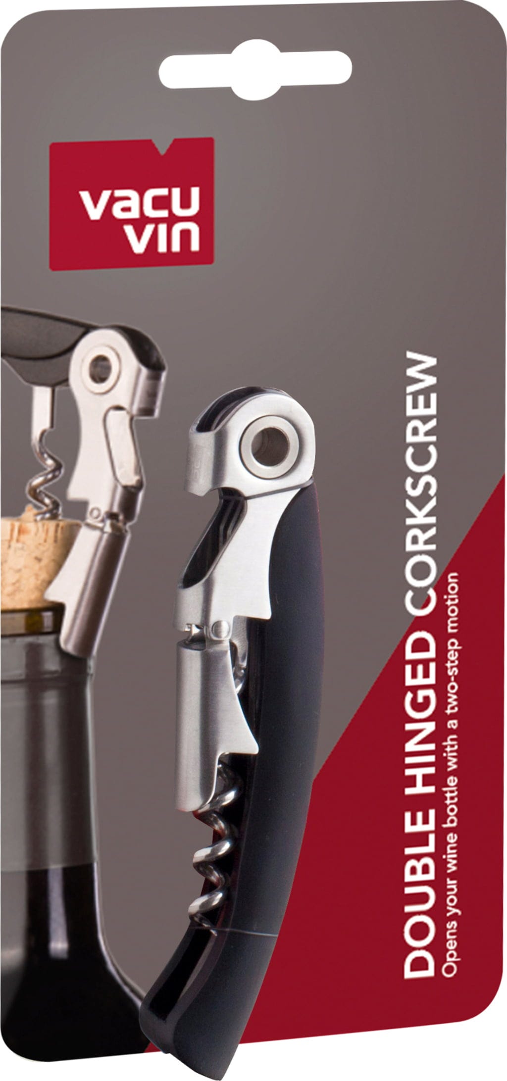 Több funkció, kevesebb erőfeszítés! A Vacu Vin kétlépcsős dugóhúzója az Ön okos, „minden egyben” segítőtársa borhoz, sörhöz, üdítőkhöz és sok máshoz – kompakt, hatékony és mindig használatra kész.