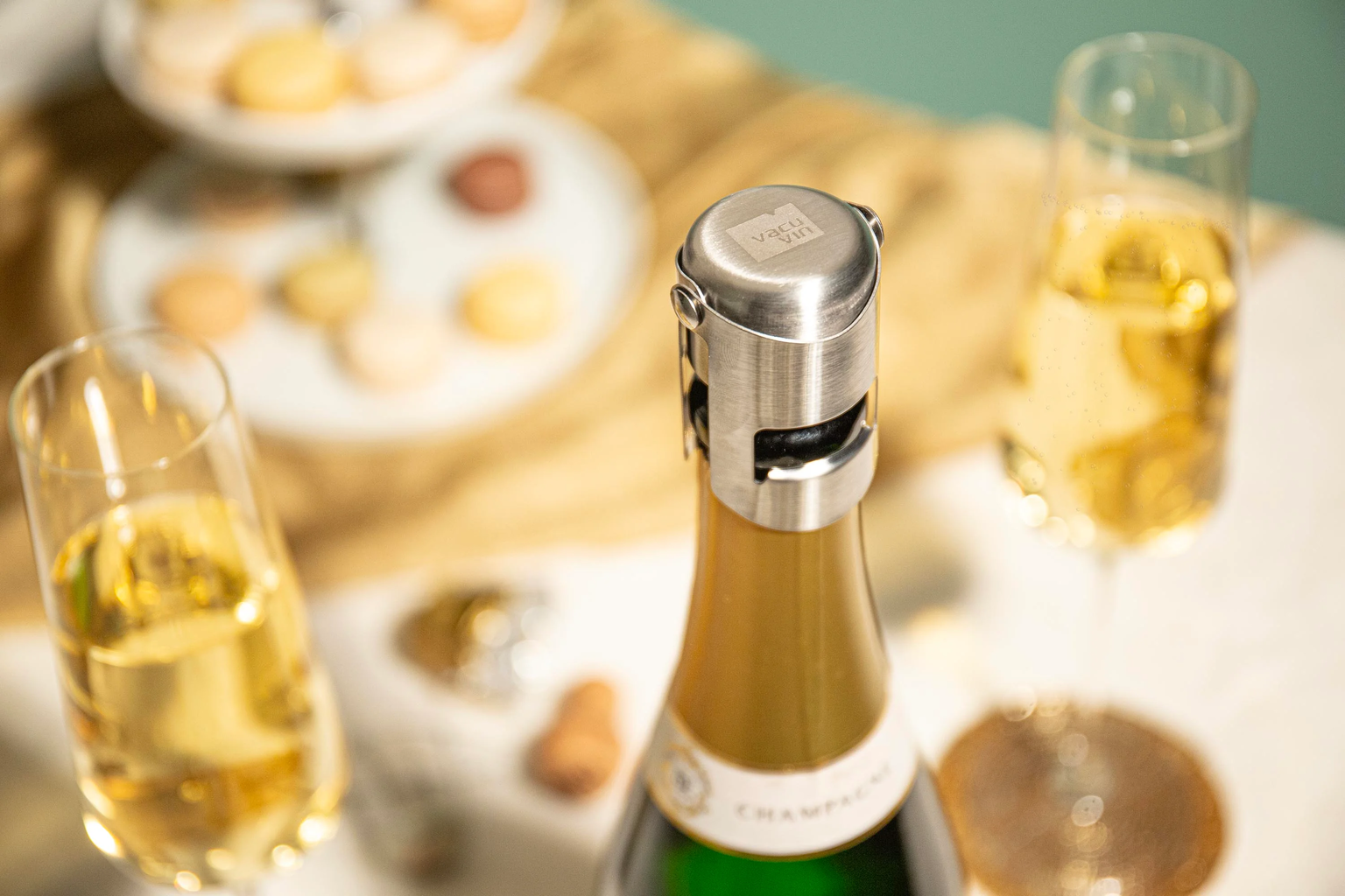 A Vacu Vin pezsgőzár gondoskodik arról, hogy a pezsgő a felbontás után is friss és gyöngyöző maradjon. A légmentesen záródó rozsdamentes acél zár megőrzi az aromát és a szénsavat.