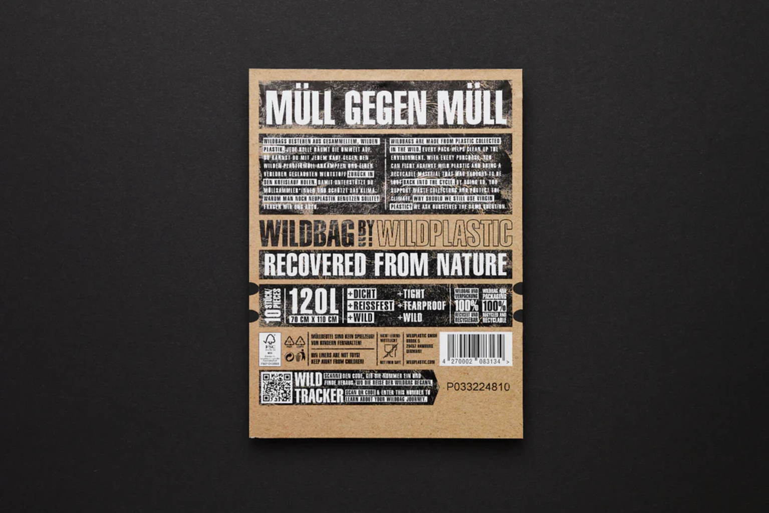 WILDPLASTIC Wildbag nagy teherbírású szemeteszsák, 120 literes