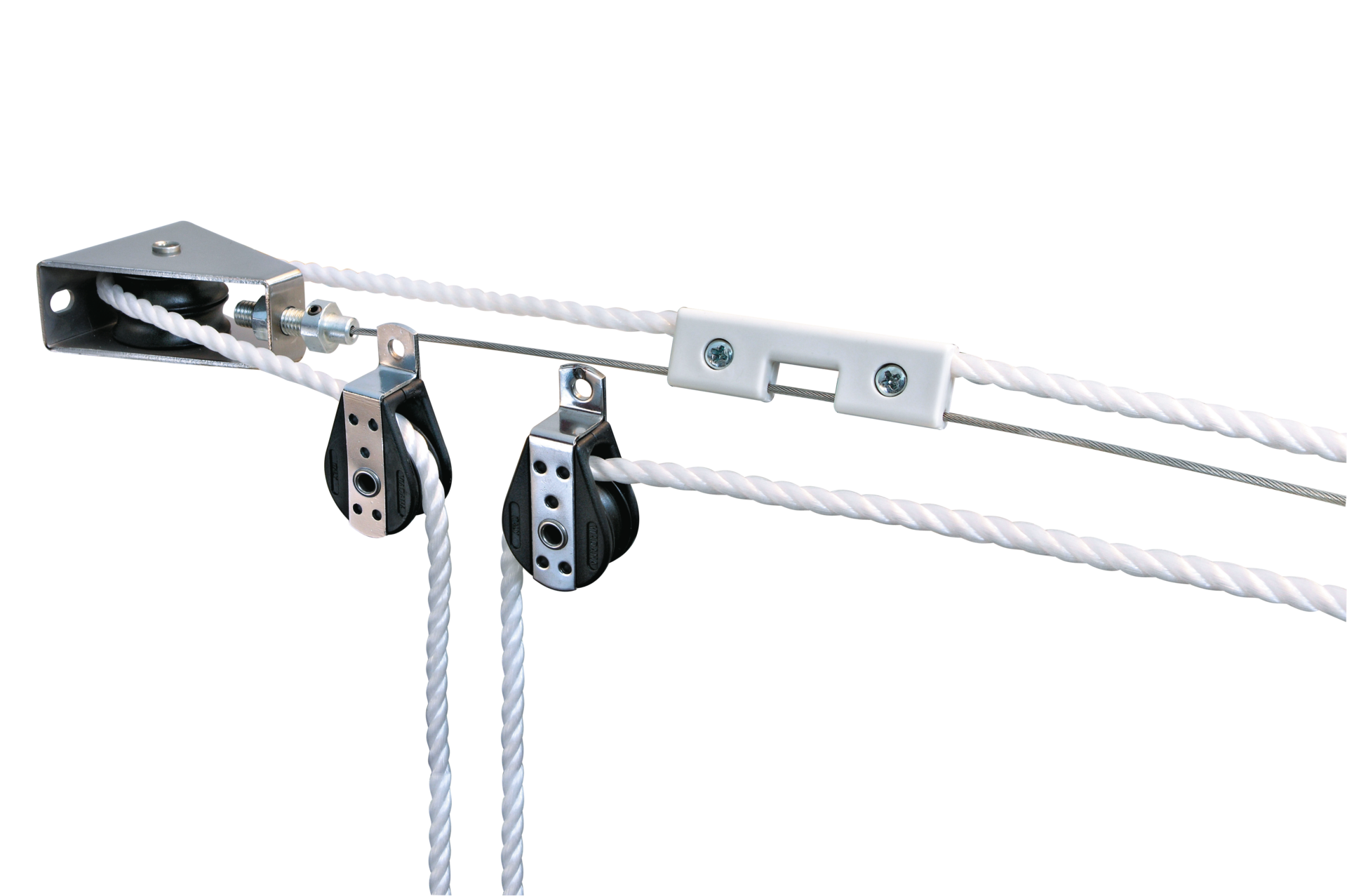 - 35 m műanyag kötél a vitorlák kifeszítéséhez és bevonásához szükséges kötélhúzó rendszerrel